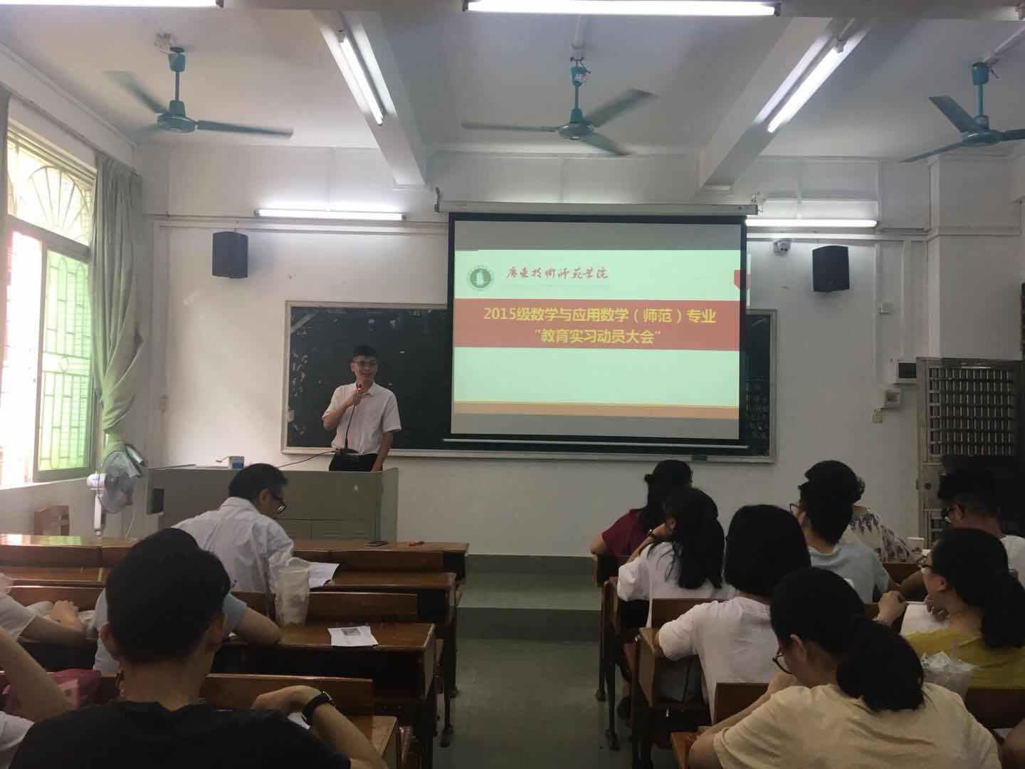 5月23日(周三)下午,数学与应用数学系在一教106为15数师两个班的同学举行了教育实习动员大会。太阳成集团tyc122cc入口梁海华副院长、赵珲副书记、数学与应用数学系肖黎明主任和张淑玲老师、辅导员李秋老师参加了实习动员大会。会议由肖黎明主任主持。