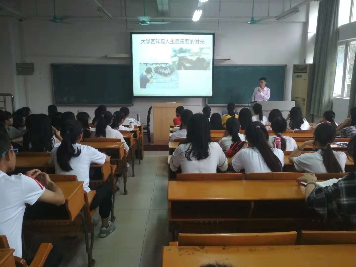10月15日上午,梁海华副院长(主持工作)在校本部第二教学楼303室,为我院2018级数学与应用数学(师范)专业1、2班学生上了一堂思想政治教育课。