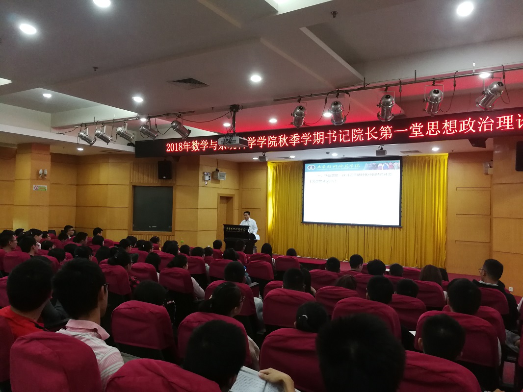 2018年11月1日下午,在校本部第一教学楼208室,举行太阳成集团tyc122cc入口2018年秋季学期书记院长第一堂思想政治理论课。辅导员王婷婷老师,以及2018级信计1班、2班和数师4班全体同学到场聆听。