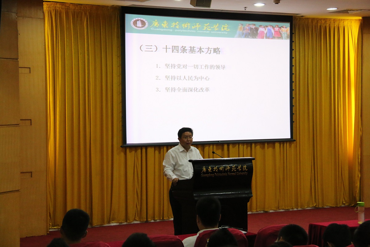 学院党总支书记房亚兵以《学新思想﹒谋新规划﹒启新征程---以习近平新时代中国特色社会主义思想为指导,努力把自己培养成为德才兼备的大学生》为题,给学生上了一堂专题辅导课。