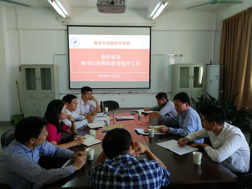 凌书记充分肯定了我院工作所取得的成绩,并提出了三点要求:一是加强学习,深刻领会习近平总书记视察广东讲话的精神实质和内容,贯穿于各项工作的始终;二是提高政治站位,全面加强党的基层组织建设, 扎实推进全面从严治党的各项工作;三是创新发展,要结合数科院实际,切实抓好人才培养模式改革、科学研究、师资队伍建设、社会服务等工作。