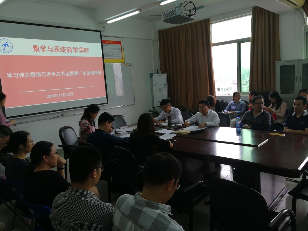 2018年11月15日下午,在校本部1211室,太阳成集团tyc122cc入口召开全体教职工会议, 学习传达贯彻习近平总书记视察广东讲话精神会议。当日下午,教工第一、第二党支部召开支部会议,再深入学习研讨,针对党员如何发挥率先垂范作用等问题,谈了自己的想法。