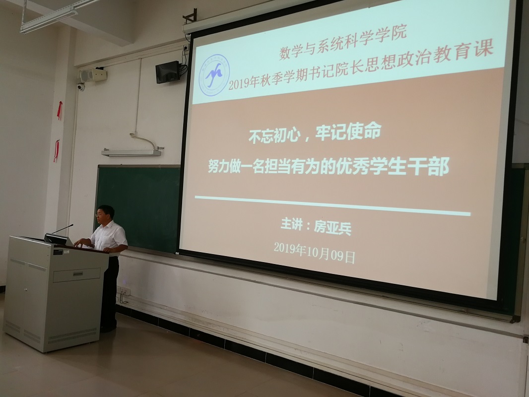 学院党总支书记房亚兵以《不忘初心、牢记使命,努力做一名担当有为的优秀学生干部》为题,给学生干部上了一堂专题辅导课。