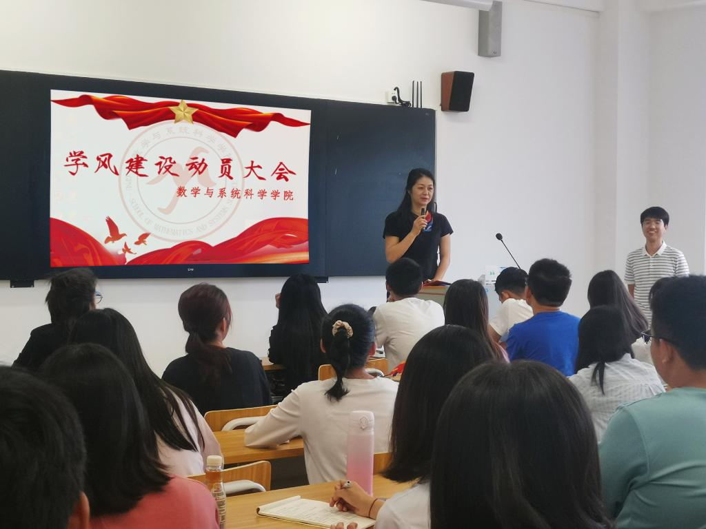 在动员大会上,李玉佳老师对数科院2020级新生的班风建设、学风建设、舍风建设、文明礼仪和外出制度五大方面提出了要求和建议;陈齐民老师进行补充,提出对学生干部的高标准和严要求;最后,赵珲书记从学生个人的学习、生活和工作三个层面对大家提出殷切的期望,并着重强调了优良班风、学风和舍风建设的重要性。