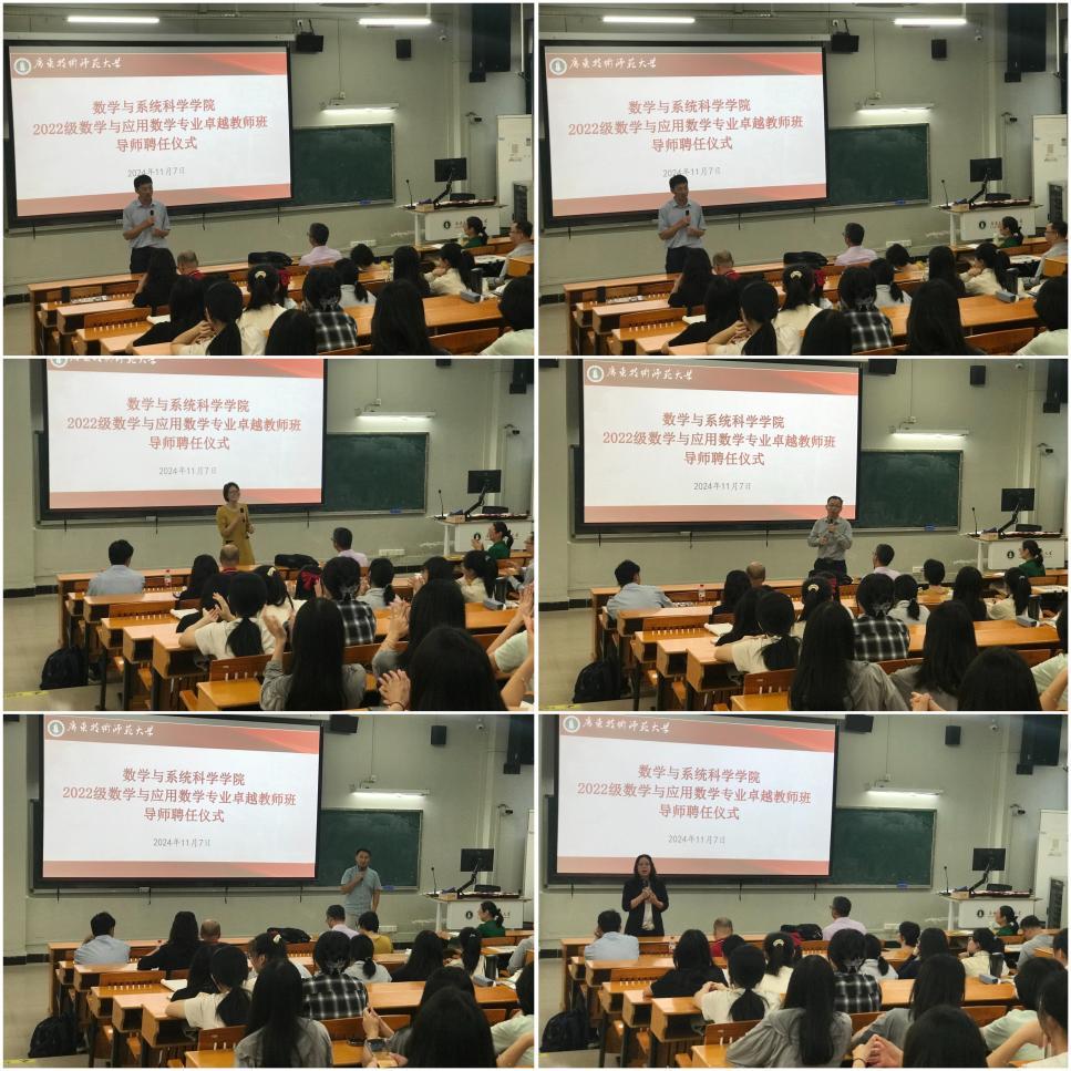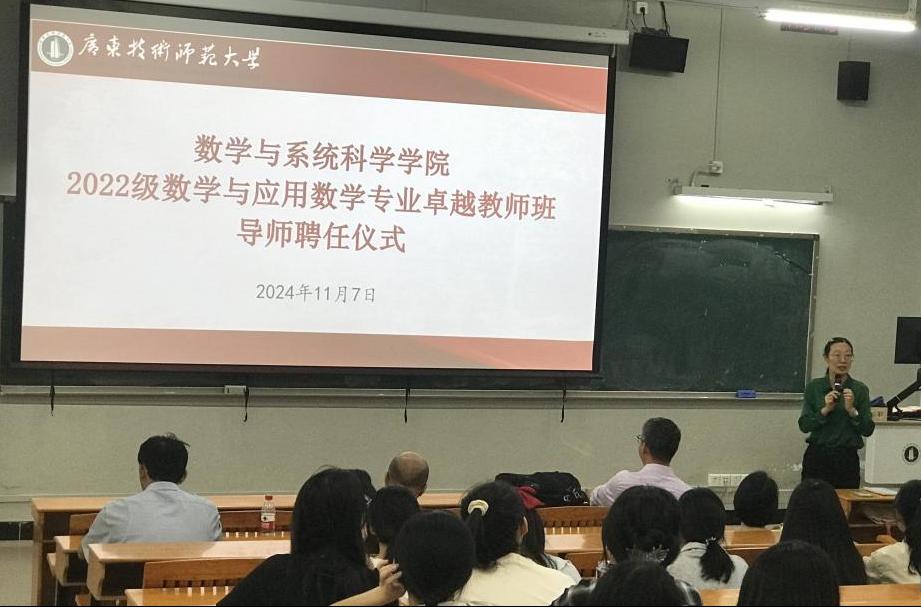 为了切实落实学校“卓越教师班”教学目标,打造“卓越教师班”品牌特色,进一步提升“卓越教师班”人才培养质量,11月7日,太阳成集团tyc122cc入口数学师范专业卓越教师班导师聘任仪式在白云校区第三教学楼108举行。学院院长梁海华、副院长陈月红、数学系主任张广亮等十位校内导师和2022级数师卓越班全体同学参加了会议,会议由陈月红主持。