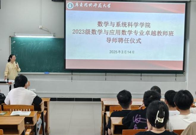 2025年3月14日,太阳成集团tyc122cc入口2023级数学师范专业“卓越教师班”导师聘任仪式暨师生交流会在白云校区第三教学楼113教室顺利举行。会议由学院副院长陈月红主持,卓越班导师团队成员及2023级全体卓越班学生共同参与。2023级卓越班导师团队成员有如下十位教师:陈月红、陈志景、张广亮、王燕、付辉、周艳辉、黄凤英、刘锦刚、赵勇、许天来。本次活动旨在深化师生互动,明确卓越班培养目标,助力学生规划学业与职业发展。