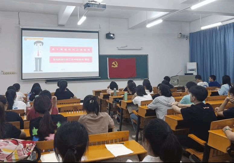 5月16日下午,全体入党积极分子与发展对象于三教112参加第四次党课培训,主要围绕党的二十大精神宣讲暨党员发展程序进行学习。由学生党员组成的二十大精神宣讲团用通俗的语言、真切的情感向学员们分享对党的二十大的所思所想和所见所悟,传达了党的二十大精神核心要义。随后由古尚宾、陈炼栋等为代表的两个小组轮流开展入党启蒙教育,聚焦为什么要入党、怎么样入党、怎么样成为一名合格的党员三个方面,叮嘱广大加入党组织的新同学要提高思想觉悟,坚定理想信念,树立正确的入党动机,为学校的建设发展做贡献,以实际行动争取早日入党。大家纷纷表示,要深入学习宣传贯彻党的二十大精神,敢于斗争、敢于胜利,切实把思想和行动统一到党的二十大精神上来。