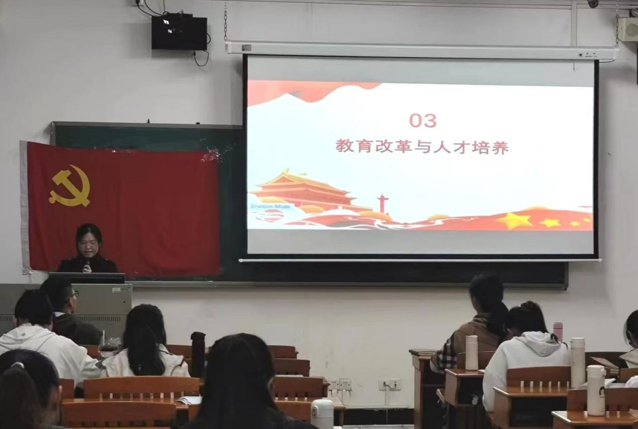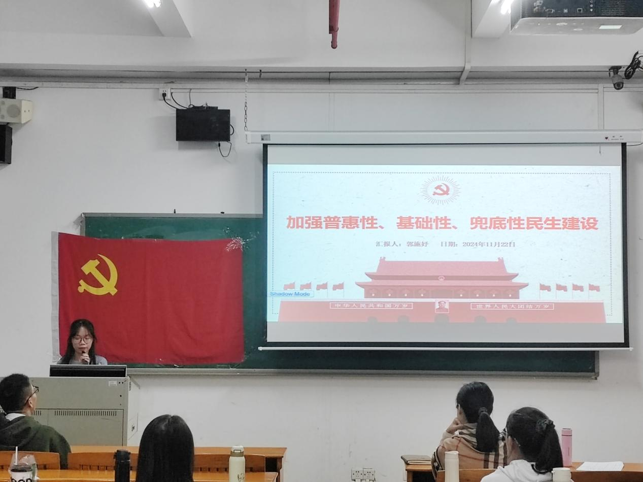 第二十三期思·享读书会,全体党员集体学习杂志《求是》,学生党员殷碧茹、郭施妤作为党员代表分享学习心得。