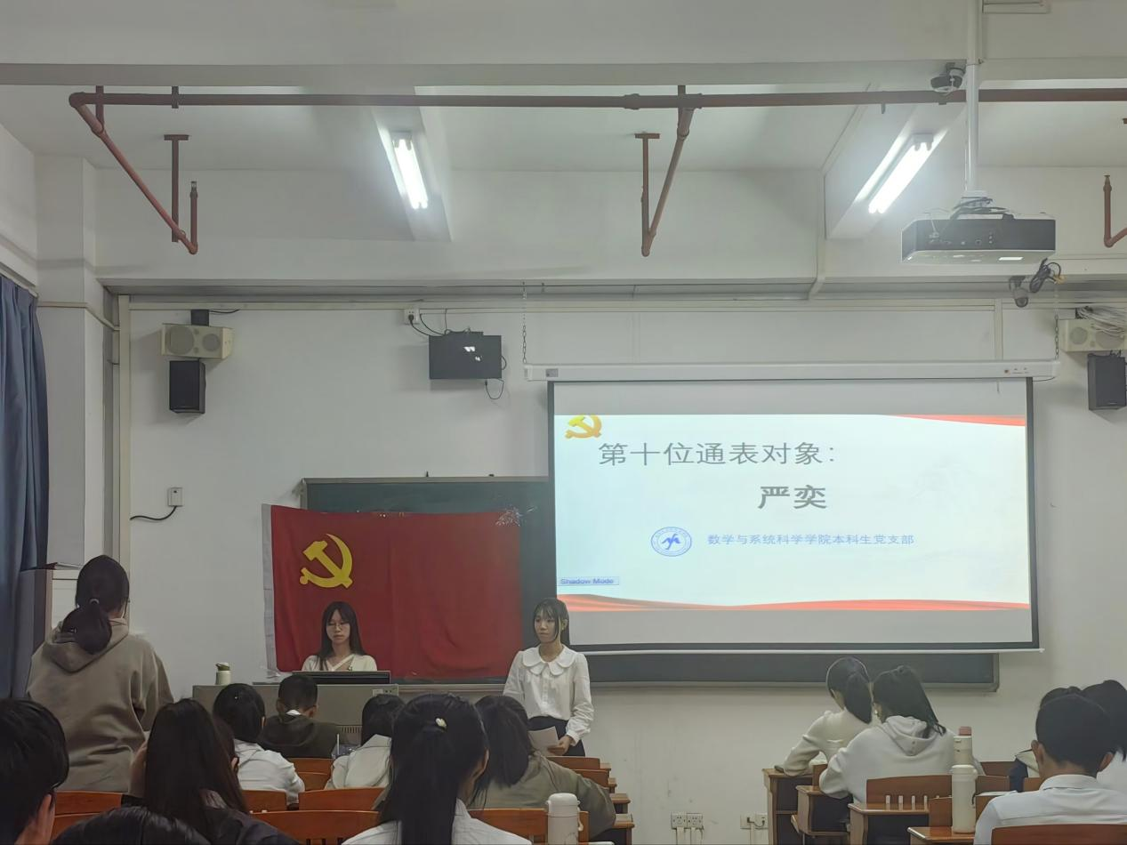 通表环节由本科生党支部支委成员林妙玲主持并向大会报告出席党员人数。全体参会人员奏唱国歌。接着10位发展对象逐一进行通表流程。通表对象向大会宣读《入党志愿书》,汇报个人情况,并对未来一年的规划进行表态。两名入党介绍人发表意见,并由本科生党支部支委成员黄泽佳介绍政审情况和宣读群众意见。随后通表对象针对群众意见反馈进行个人表态,并由全体正式党员进行投票表决。经过无记名投票,全体正式党员一致同意吸收10位发展对象成为预备党员。