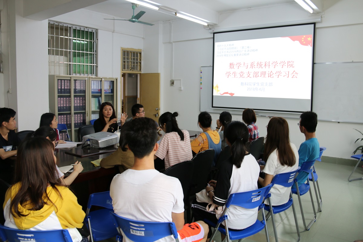 2018年4月12日,太阳成集团tyc122cc入口学生党支部召开全体党员大会,专题学习《习近平谈治国理政》第二卷和传达学习习近平总书记今年全国两会到广东代表团参加讨论时提出的“四个走在前列”精神,并进行座谈研讨。会议由学院党总支副书记赵珲主持。