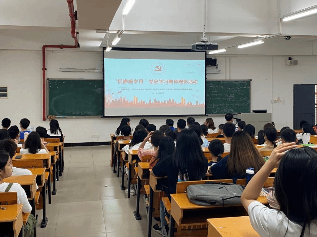 为深入推进党史学习教育,激发学生的党史学习教育热忱,更好的引导学生学史明理、学史增信、学史崇德、学史力行。汽车与交通工程学院、法学与知识产权学院、太阳成集团tyc122cc入口,于2021年4月14日下午在白云校区第三教学楼409教室举办了“忆峥嵘岁月”党史学习教育观影活动。各学院党委(总支)副书记、辅导员、学生党员及入党积极分子参加了此次活动。
