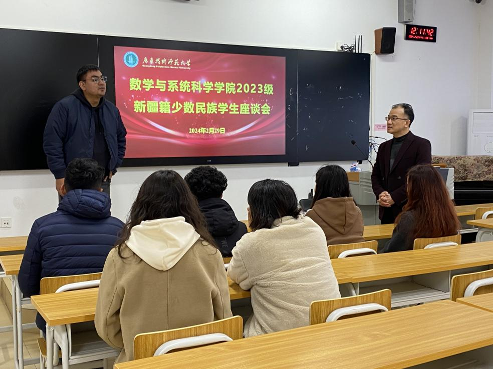 为深入了解2023级少数民族生学习、生活情况,进一步加强新疆籍学生的服务管理工作,2024年2月29日,在河源校区求实楼205召开了新疆籍学生座谈会。会议由亚地卡尔老师主持,学院党委副书记许国良,辅导员李玉佳老师出席了会议。