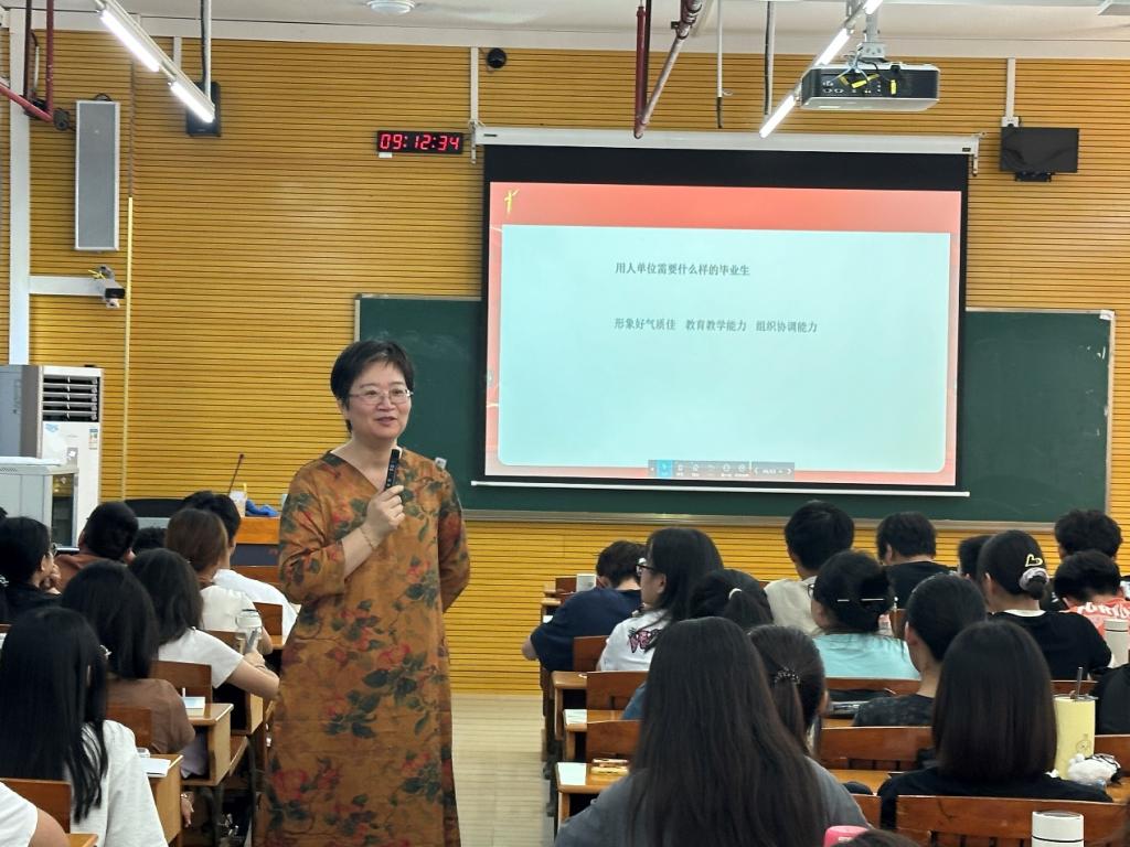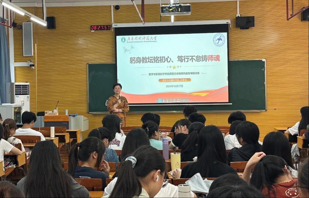 为加强师德师风建设,提升师范生的职业道德素养,太阳成集团tyc122cc入口于10月17日在白云校区三教201开展了“躬身教坛铭初心,笃行不怠铸师魂”师德师风教育主题讲座,主持人为我院党委书记白雪飞,23数师3班和23数师4班的同学参学习。