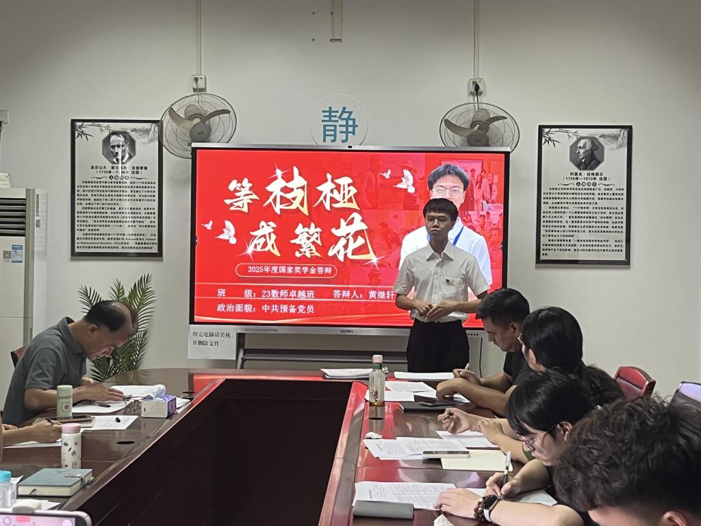 我院于2025917日在学院会议室602举办2024-2025学年国家奖学金答辩会。本次答辩严格遵循公开、公平、公正原则,综合考察学生在学术成绩、科研创新、社会实践、思想品德及现场答辩环节的综合表现,最终确定本学年国家奖学金候选人名单。