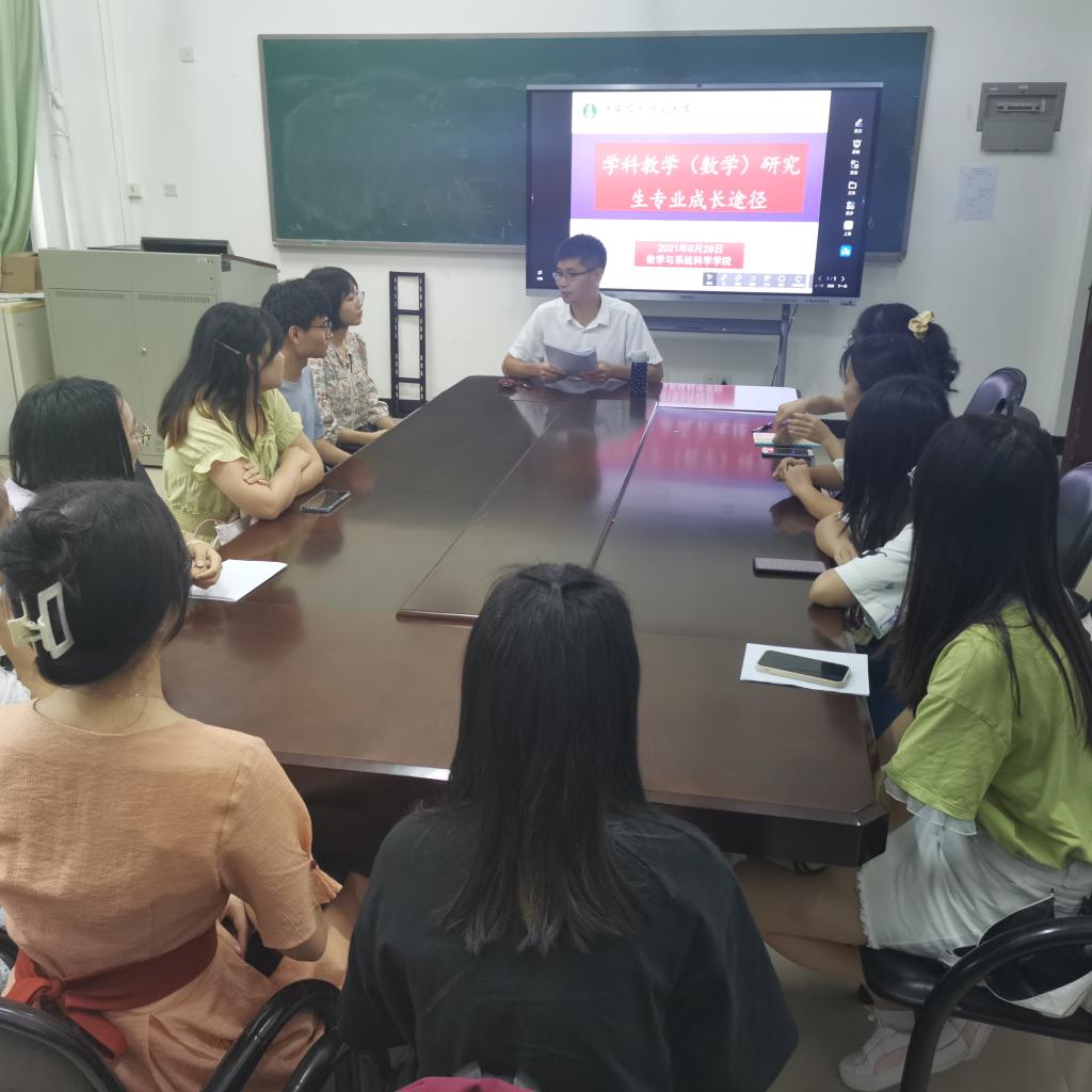 为贯彻落实全国高校思想政治工作会议精神,进一步加强我院研究生的思想政治教育,引导研究生在入学阶段做好专业发展规划,9月28日上午,梁海华院长在白云校区第一教学楼213室为2021级学科教学(数学)专业的研究生讲授了题为“学科教学(数学)研究生专业成长途径”的专题思政课。